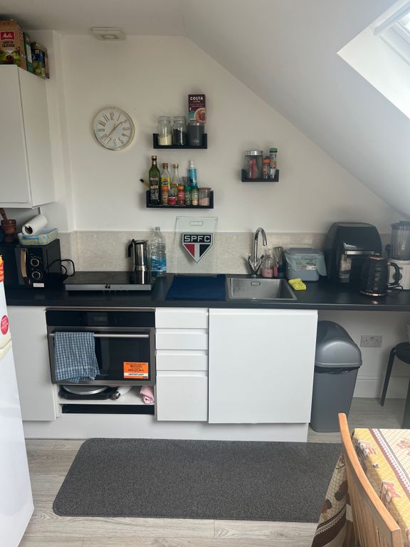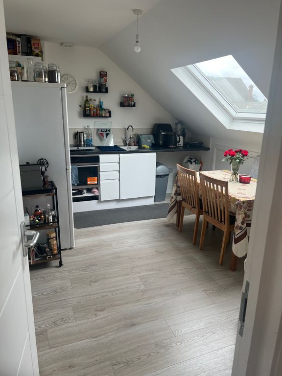 A bright and well-presented one-bedroom flat offering modern living in a light-filled and functional space. The property features a spacious open-plan kitchen and dining area, enhanced by a large skylight that floods the room with natural light. The kitchen is well laid out with ample storage and worktop space, making it both practical and ideal for everyday living. The double bedroom is generously sized and benefits from a large window, creating a bright and comfortable environment, along with built-in storage. A clean and contemporary bathroom completes the property. Finished in neutral décor throughout, the flat is well maintained and offers a smart layout that maximises both space and natural light. Conveniently located close to local amenities and transport links, this property is ideal for professionals or couples.