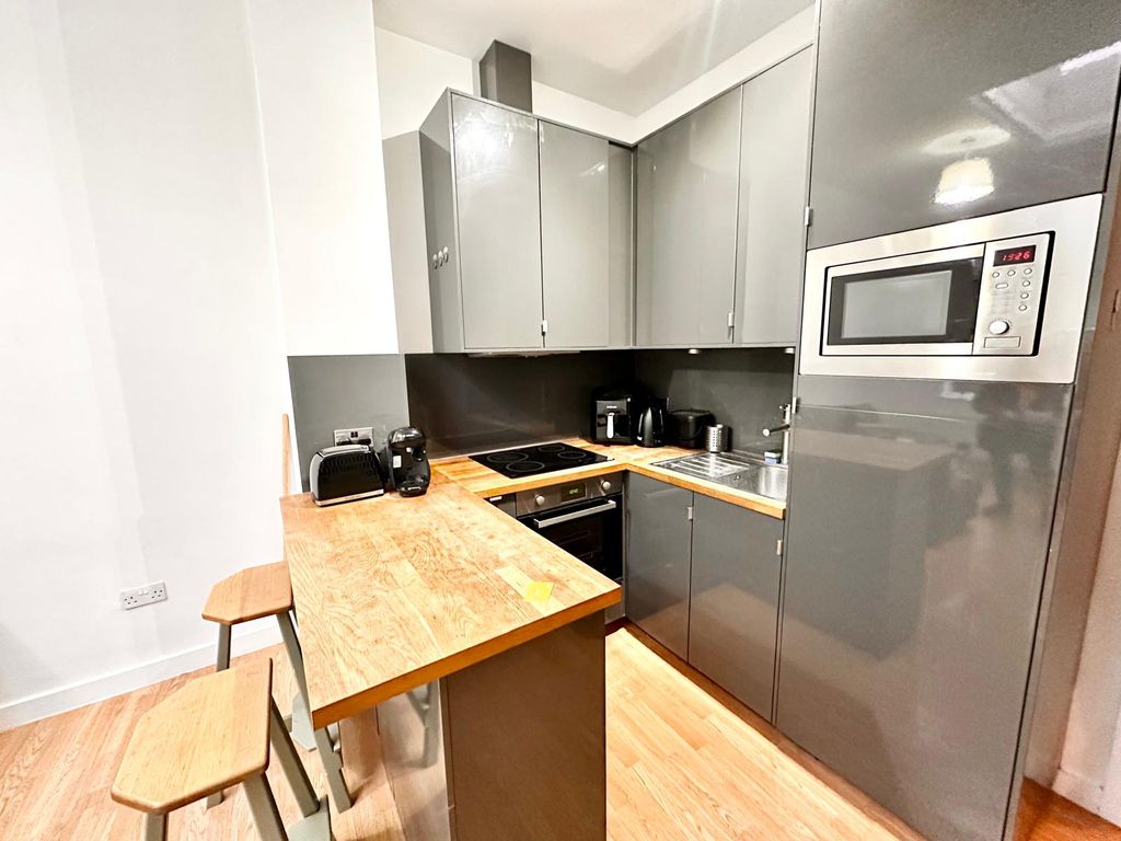 A well-presented and modern apartment offering bright and comfortable living in a convenient location. The property features a spacious open-plan living area with a contemporary fitted kitchen and breakfast bar seating, ideal for both relaxing and entertaining. Large windows and a skylight allow for plenty of natural light, creating a bright and airy feel throughout. The bedroom is well-sized and fully furnished, providing a comfortable and practical living space. The property also benefits from a clean and modern bathroom. Ideal for professionals or couples, this property offers a great balance of style, comfort and convenience.